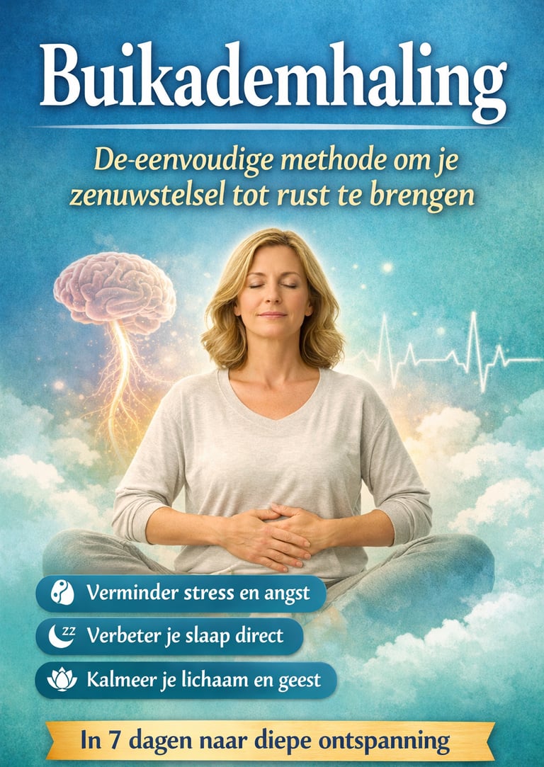 Dit praktische e-book laat je ontdekken hoe buikademhaling je zenuwstelsel rechtstreeks kalmeert — zonder medicatie, zonder zweverigheid, en zonder ingewikkelde technieken.